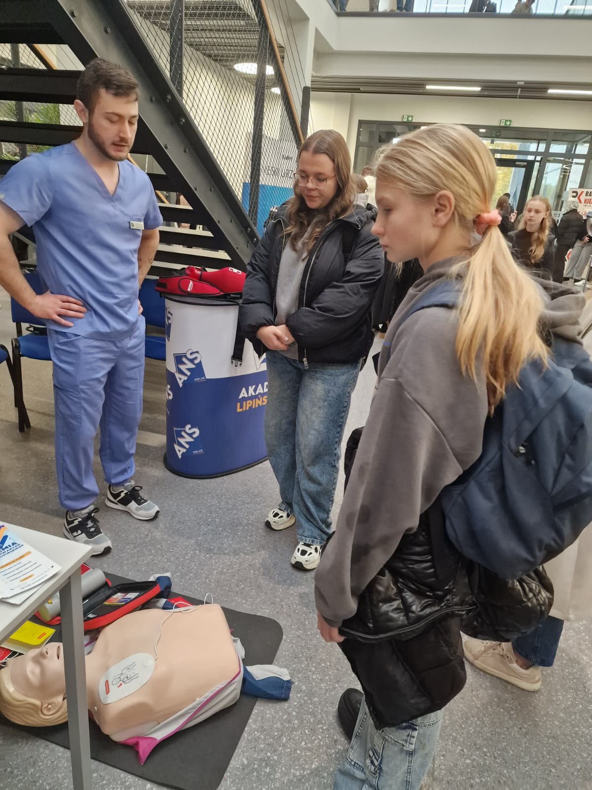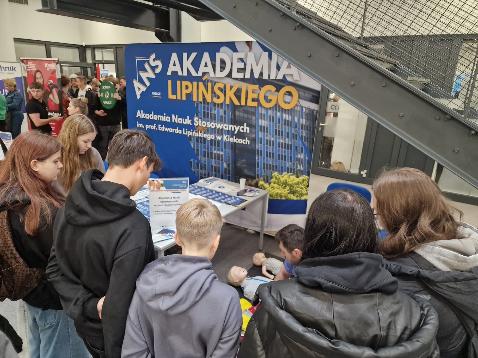 Nasze stoisko w Strefie Zdrowia i Urody cieszyło się dużym zainteresowaniem – prezentowaliśmy kierunki związane z kosmetologią i pielęgniarstwem, pokaz pierwszej pomocy, a także opowiadaliśmy o możliwościach rozwoju w Akademii Lipińskiego.