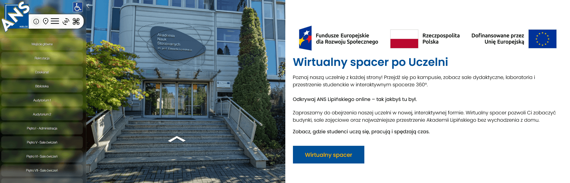 W ramach projektu „Dostępna Akademia Lipińskiego” zapraszamy kadrę kierowniczą oraz administracyjną Akademii Nauk Stosowanych im. prof. Edwarda Lipińskiego w Kielcach do udziału w szkoleniach podnoszących kompetencje w zakresie dostępności.