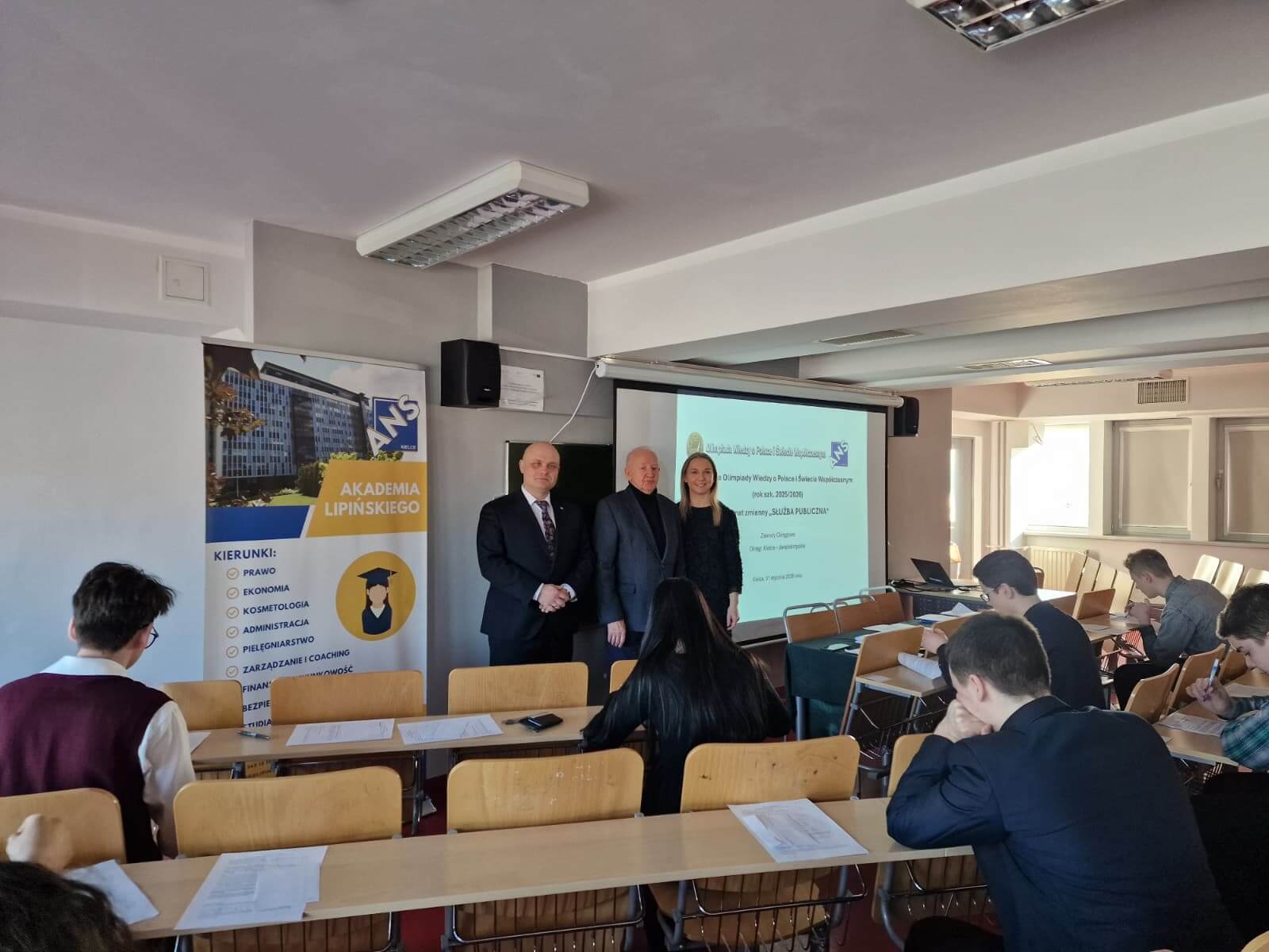 W dniu 31 stycznia 2026 roku w siedzibie Akademii Nauk Stosowanych im. prof. Edwarda Lipińskiego w Kielcach przeprowadzono zawody okręgowe 67. edycji Olimpiady Wiedzy o Polsce i Świecie Współczesnym.