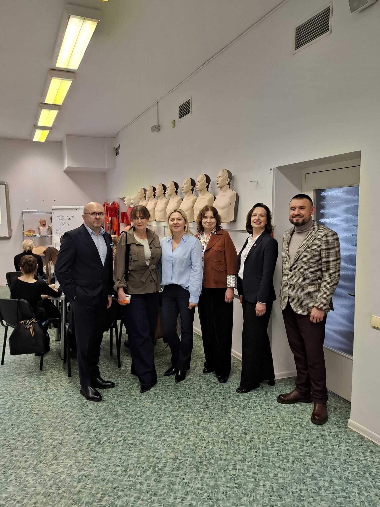 Wizyta obejmowała także laboratoria pielęgniarstwa i położnictwa. Gości szczególnie zainteresowały zajęcia online prowadzone dla studentów zagranicznych oraz imponująca liczba sprzętu dostępna na jednego studenta.